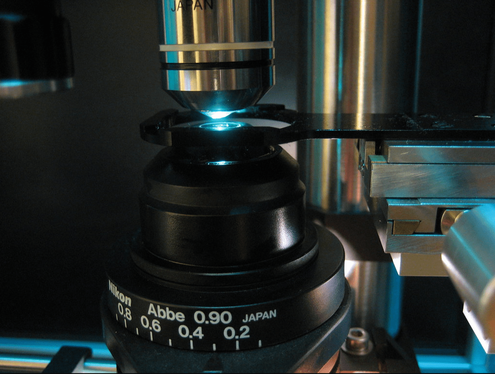 FR: Es fa amb unes eines que es diuen pinces òptiques, aquesta tècnica experimental que permet atrapar, immobilitzar, capturar partícules molt petites, de plàstic, i ancorar-les amb llum, movent el feix de llum, unint aquesta boleta a una molècula i tirar la molècula. Són tècniques que se’n diuen d’espectroscopia, mesura d’espectres, d’alguna manera de força, mesuren forces, i tenim una resolució de piconewtons, 10 elevat a -12 newtons, un newton és un quilo, per tant és una força extremadament petita. I mesurem distàncies de desplaçaments de l’ordre del nanòmetre. Per tant tenim una mesura d’energies, l’energia es mesura com el producte de la força per la distància, com el treball mecànic, i un piconewton per un nanòmetre és 10 elevat a -21 joules.